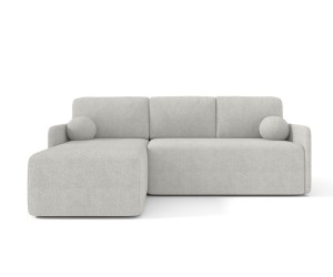 TRIVIO N9 ist ein einzigartiges Ecksofa mit subtil abgerundeter Linienführung im Stoff Abriamo Boucle. Dieses elegante Sofa wurde im Hinblick auf moderne Innenräume entworfen. Mit seiner minimalistischer Form und dezenter Ausführung bringt die Ecke visuell ästhetische Eindrücke in jedes Zuhause. Das Modell zeichnet sich nicht nur durch unübertroffene Bequemlichkeit, sondern auch durch hohe Funktionalität aus. Für einen hohen Komfort sorgt die Sitzfläche, die mit Federkern und Schaumstoff gefüllt wird. Das Möbel kann mit einer Schlaffläche 123 x 198 cm als Bett genutzt werden, da es mit einem Automat zum einfachen Ausklappen ausgestattet ist. Eine praktische Lösung bietet die Ecke mit einem Bettkasten, um Bettwässche oder Kissen ordentlich aufzubewahren. Ein zusätzliches Dekorationselement bilden bequeme Rückenkissen, die dem Möbel eine ansprechende Präsenz verleihen. Die Kissen verfügen über einen Reißverschluss, um den Bezug waschen zu können. Die Rückseite des Ecksofas ist gepolstert, deswegen kann es frei in der Mitte des Raumes aufgestellt werden.