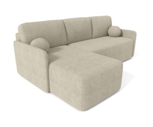 TRIVIO N9 ist ein einzigartiges Ecksofa mit subtil abgerundeter Linienführung im Stoff Abriamo Boucle. Dieses elegante Sofa wurde im Hinblick auf moderne Innenräume entworfen. Mit seiner minimalistischer Form und dezenter Ausführung bringt die Ecke visuell ästhetische Eindrücke in jedes Zuhause. Das Modell zeichnet sich nicht nur durch unübertroffene Bequemlichkeit, sondern auch durch hohe Funktionalität aus. Für einen hohen Komfort sorgt die Sitzfläche, die mit Federkern und Schaumstoff gefüllt wird. Das Möbel kann mit einer Schlaffläche 123 x 198 cm als Bett genutzt werden, da es mit einem Automat zum einfachen Ausklappen ausgestattet ist. Eine praktische Lösung bietet die Ecke mit einem Bettkasten, um Bettwässche oder Kissen ordentlich aufzubewahren. Ein zusätzliches Dekorationselement bilden bequeme Rückenkissen, die dem Möbel eine ansprechende Präsenz verleihen. Die Kissen verfügen über einen Reißverschluss, um den Bezug waschen zu können. Die Rückseite des Ecksofas ist gepolstert, deswegen kann es frei in der Mitte des Raumes aufgestellt werden.