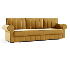 TRIVIO K6 ist ein bequemes und funktionales 3-Sitzer-Sofa, das zum gemütlichen Verweilen einlädt. Schöne Steppung mit vertikalen Nähten sowie stilvoll abgerundete Armlehnen verleihen dem Möbel eine feine Eleganz und ausgesprochene Präsenz. Die Couch mit Schlaffunktion, Bettkasten und Automat zum einfachen Ausklappen. Hochwertige Materialien und robuste Ausführung kennzeichnen dieses Möbelstück. Die Rückseite ist gepolstert, deswegen kann das Sofa frei in der Mitte des Raumes aufgestellt werden.