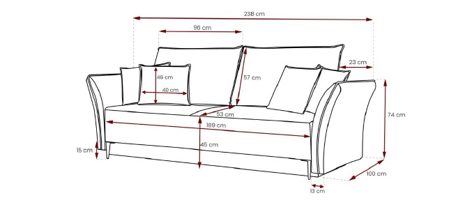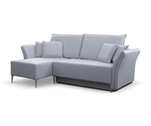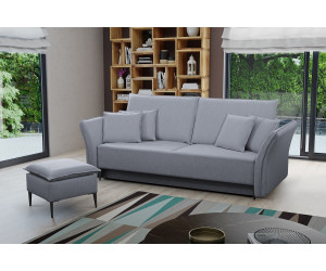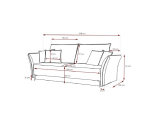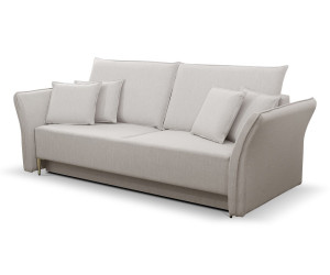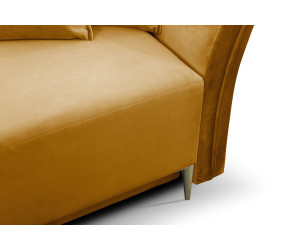 Stilvolles und elegantes Sofa BREGI mit Schlaffunktion und Bettkasten. Die Rückenlehne bilden lose bequeme Rückenkissen. Die leicht geschwungenen Armlehnen betonen den stilvollen Effekt. Solide Ausführung sorgt für Robustheit und langlebige Qualität. Das Gestell wird aus Holz, Spanplatte und MDF-Platte gefertigt. Im Bereich der Sitzfläche werden die Bonellfedern für das maximale Wohlfühlerlebnis verbaut. Die Rückenkissen bestehen aus Schaumstoff. Das Sofa ist freistehend, da die Rückseite gepolstert ist. Die schön geformten Metallfüße in drei Farben zur Auswahl - schwarz, silbern und golden - unterstreichen einen attraktiven Charme des Möbels.