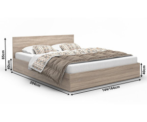 MONAKO ist ein klassisches Doppelbett mit einer Schlaffläche 160x200 cm. Das Möbel wird aus einer hochwertigen Laminatplatte (Dicke 16 mm) im Farbton Sonoma Eiche gefertigt. Die Kanten mit ABS-Umrandung sorgen für Robustheit und lange Lebensdauer. Das Bett verfügt über einen soliden Lattenrost mit Belastbarkeit bis 200 kg. Die drei Quertrennwände im Innenraum des Bettes bilden eine zusätzliche stabile Unterstützung und damit zwei funktionale Stauräume für die Aufbewahrung von Bettwäsche und Kissen. Ablageboden unter Lattenrost nicht vorhanden. Eine passende Matratze können Sie separat in unserem Shop bestellen.