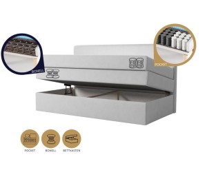 Das Einzelbett INTARO A12-2 mit Bettkasten fügt sich perfekt in moderne und klassische Einrichtungen ein. Sein elegantes Design passt sowohl in große als auch in kleinere Schlafzimmer und bereichert sie mit Stil und Funktionalität.