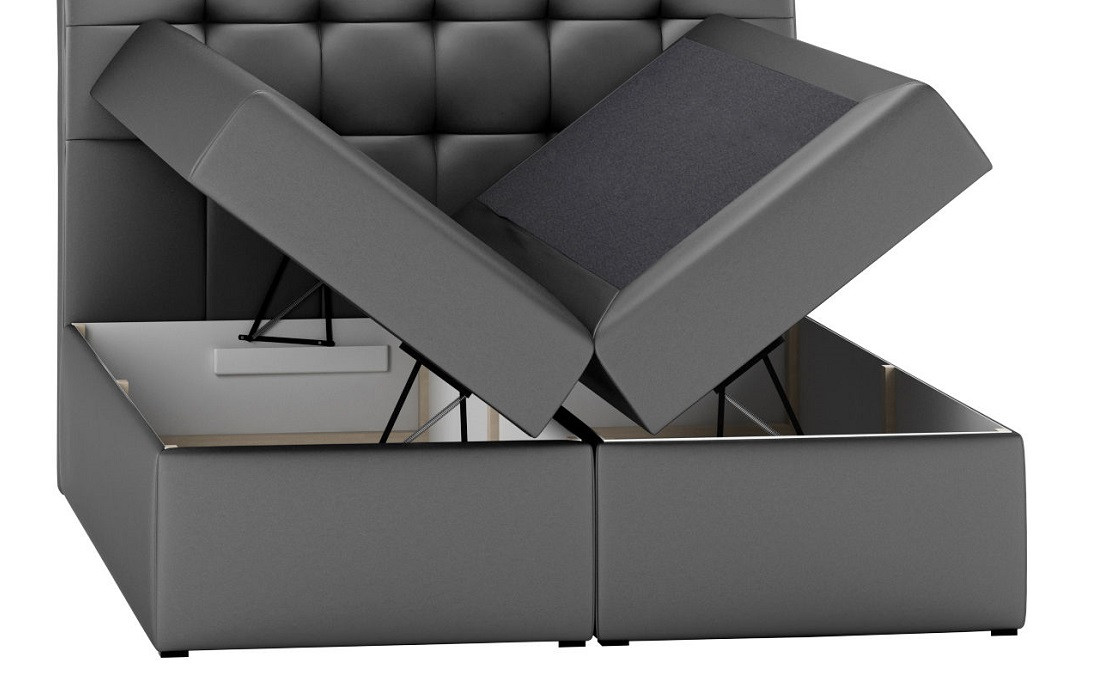 Zwei separate praktische Bettkästen, die sich rechts und links befinden, bieten viel Stauraum für Bettdecke und Kissen.