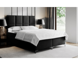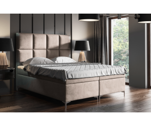 Das komfortabel gepolsterte Boxspringbett MEROO 4M  sorgt für angenehme Nächte und einen erholsamen Schlaf. Das elegante hohe Kopfteil ist gepolstert und mit dekorativer Karo-Muster gesteppt, was einen besonderen Charakter dieses Möbelstücks betont. Verchromte Füße sind formstabil und verleihen dem Möbel viel Leichtigkeit. Hochwertige Materialien und robuste Ausführung mit viel Liebe zum Detail garantieren lange Lebensdauer.