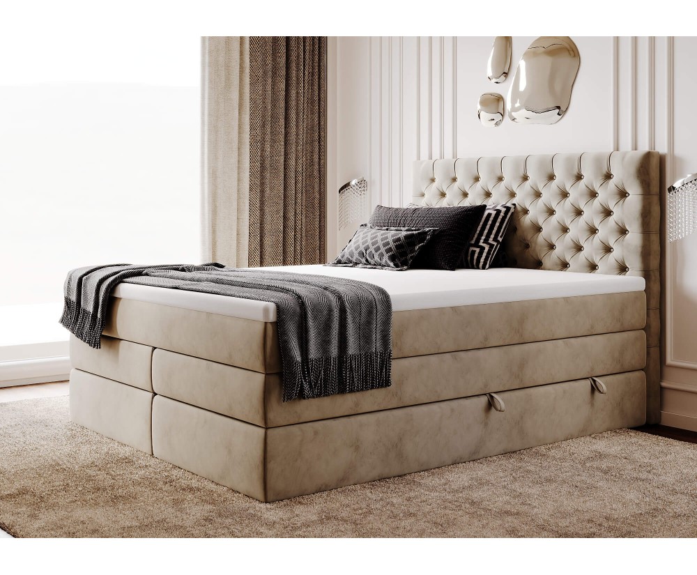 Das BoxspringbettMAGNUS 15B ist ein stilvolles, elegantes Bett mit einem schönen modernen Kopfteil, das durch seine Chesterfield-Steppung besticht. Sein interessantes Design, das luxoriöse Ästhetik mit Komfort verbindet, schafft im Schlafzimmer eine einzigartige Stimmung. Hochwertige Verarbeitung und robuste Ausführung garantieren lange Lebensdauer.