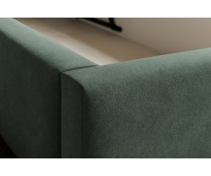 Das Modell AZURO S03 verfügt über einen geräumigen Bettkasten, mit dem der Raum unter dem Bett effizient ausgenutzt wird, was besonders in kleineren Räumen wichtig ist. Der Lattenrost mit Metallrahmen lässt sich mit Gasdruckfedern leicht anheben und bietet einen einfachen und bequemen Zugang zum Stauraum.