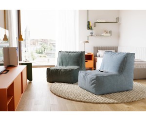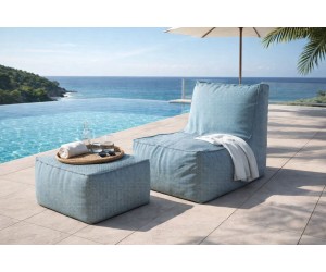 Die leichte Konstruktion, der schnell trocknende Stoff und die flexible Füllung aus EPS-Granulat sorgen dafür, dass sich sowohl der Sessel als auch der Pouf optimal an die Körperform anpassen und beim Entspannen einen bequemen und stabilen Halt bieten.