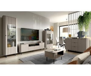 NOVADO ist eine Möbelkollektion für Wohnzimmer, die Eleganz und Funktionalität vereint. Ihr besonderes Merkmal sind die gefrästen und laminierten MDF-Fronten, die in jedem Interieur ein einzigartiges Flair ausstrahlen.