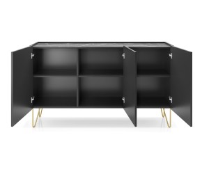 Die Kommode 144 ROIS ist ein großes, modernes und besonders geräumiges Möbelstück für das Wohnzimmer. Sie verbindet elegantes Loft-Design mit hoher Funktionalität und hochwertiger Verarbeitung. Die stilvolle Farbgebung in Graphit schwarz mit Natural-Wood-Struktur sowie die edle Marmoroptik der Abdeckplatte machen die Kommode zu einem echten Blickfang in jedem Interieur.