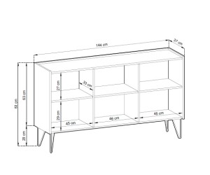 Die Kommode verfügt über drei Türen mit Einlegeböden im Inneren, wodurch viel Platz zur Aufbewahrung verschiedener Gegenstände entsteht.