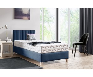 BRISTOL 2H ist ein praktisches Hotelbett, das sich mit mehreren Einrichtungsstilen hervorragend kombinieren lasst. Das Bett verfügt über ein Kopfteil mit schöner vertikaler Steppung und über ein Gestell (ohne Bettkasten). Die Höhe des Gestells beträgt 25 cm. Die Oberseite des Bettes ist mit einem rutschfesten weißen Stoff eingefasst, um ein Verrutschen der Matratze zu verhindern. Das Bett steht auf stabilen hölzernen Füßen (Höhe 12 cm) in Buchenfarbe. Matratze ist nicht inklusive. Eine passende Matratze finden Sie in unserem Shop. Das Modell ist ein idealer Vorschlag für Hotels, Gästehäuser oder Ferienwohnungen.
