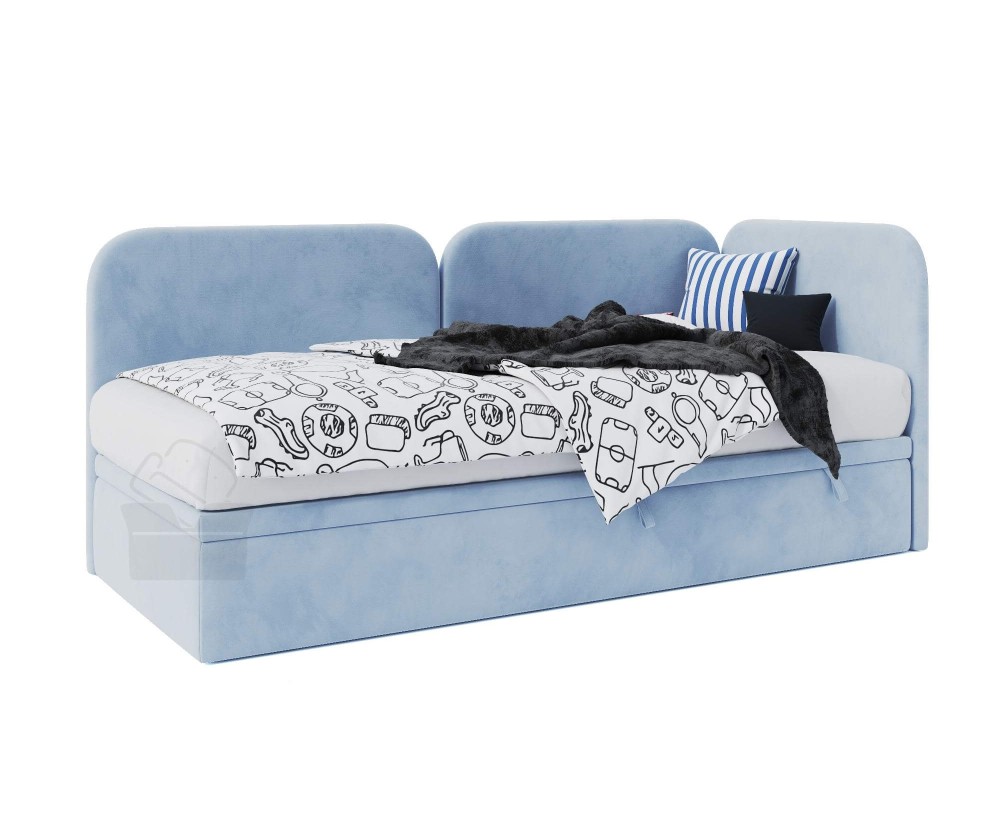 Das Polsterbett OLIVIA 3R vereint perfekt Funktionalität, stilvolles Aussehen und Bequemlichkeit und bietet somit einen idealen Vorschlag für ein Kinder- oder Jugendzimmer. Das Bett wird einerseits ein großzügiger Ort zum Entspannen und Verweilen, andererseits ermöglicht die Ordnung im Schlafraum zu halten. Charakteristisch sind hier die Seitenblende und das Kopfteil, die durch abgerundete Konturen dem Bett eine einzigartige Optik verleihen. Robuste Konstruktion garantiert Langlebigkeit. Das Modell Olivia 3R ist mit einem praktischen Bettkasten mit Druckfedern ausgestattet, was die Aufbewahrung der Bettdecken, Kissen oder Spielzeuge erleichtert. Die Rückseite des Möbelstücks ist gepolstert, deswegen kann es frei in der Mitte des Raumes aufgestellt werden.