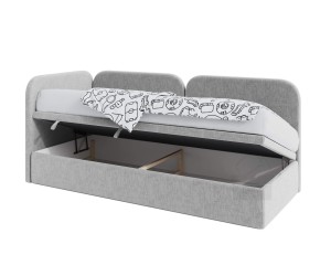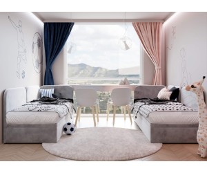 Das Polsterbett OLIVIA 3R vereint perfekt Funktionalität, stilvolles Aussehen und Bequemlichkeit und bietet somit einen idealen Vorschlag für ein Kinder- oder Jugendzimmer. Das Bett wird einerseits ein großzügiger Ort zum Entspannen und Verweilen, andererseits ermöglicht die Ordnung im Schlafraum zu halten. Charakteristisch sind hier die Seitenblende und das Kopfteil, die durch abgerundete Konturen dem Bett eine einzigartige Optik verleihen. Robuste Konstruktion garantiert Langlebigkeit. Das Modell Olivia 3R ist mit einem praktischen Bettkasten mit Druckfedern ausgestattet, was die Aufbewahrung der Bettdecken, Kissen oder Spielzeuge erleichtert. Die Rückseite des Möbelstücks ist gepolstert, deswegen kann es frei in der Mitte des Raumes aufgestellt werden.