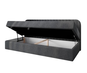 Das Polsterbett MACIUS vereint perfekt Funktionalität, stilvolles Aussehen und Bequemlichkeit und bietet somit einen idealen Vorschlag für ein Kinder- oder Jugendzimmer. Charakteristisch ist hier eine abgerundete Seitenblende mit vertikalen Nähten, die dem Bett eine einzigartige Optik verleiht. Die bequeme Rückenlehne bietet einen zusätzlichen Komfort bei der Nutzung des Bettes. Robuste Konstruktion garantiert Langlebigkeit. Das Modell MACIUS ist mit einem praktischen Bettkasten mit Druckfedern ausgestattet, was die Aufbewahrung der Bettwäsche erleichtert.