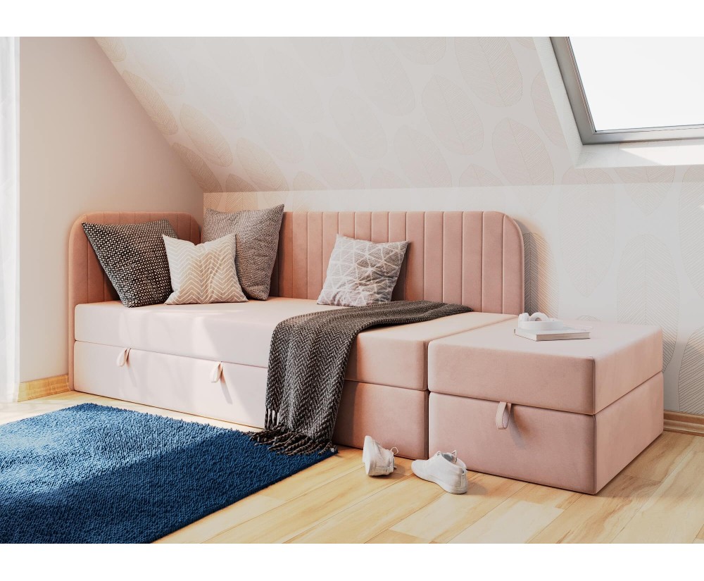 Das Eckbett INTARO A28 120x200 cm mit SITZPUFF 120x60 cm ist ein modernes und funktionales Möbelstück, das sich hervorragend in ein Jugendzimmer oder Wohnzimmer einfügt. Sein elegantes Erscheinungsbild und die praktischen Lösungen machen es zur perfekten Wahl für alle, die Wert auf Komfort und Ästhetik legen.