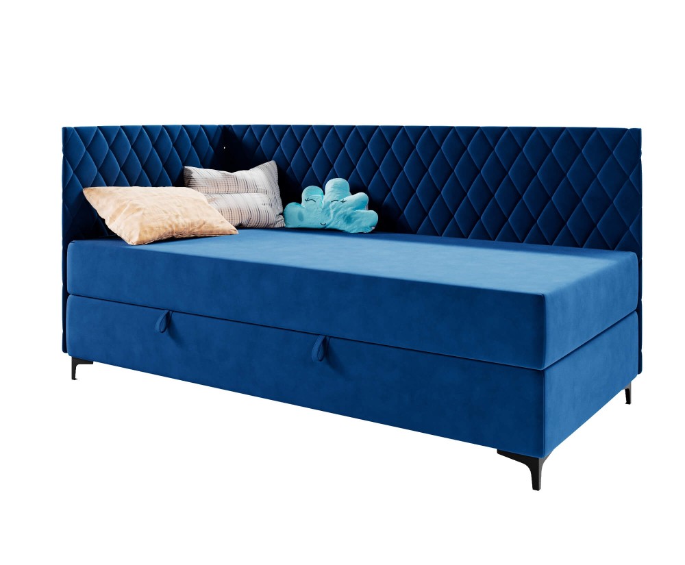 ANABELLA 2M ist ein modernes Eckbett, das sich ideal für Jugendzimmer eignet und attraktives Design mit hoher Funktionalität verbindet. Das gepolsterte Einzelbett mit einer Schlaffläche von 100x200 cm bietet komfortable Erholung und eine optimale Raumnutzung.