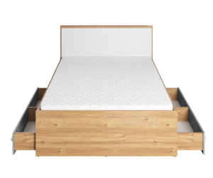 PLANO PN-10 - das Jugendbett mit einer Schlaffläche 120x200 cm. Ausgestattet mit zwei Schubladen bietet es einen praktischen Stauraum, um Bettdecken, Spielzeuge oder andere Gegenstände platzsparend aufzubewahren. Das hohe Kopfteil sichert eine bequeme Unterstützung für den Rücken beim Sitzen. Das Bett verfügt über einen Lattenrost, ohne Matratze. Die interessante Farbkombination fügt sich ideal in ein Jugendzimmer sowohl für Mädchen, als auch für Jungen ein. Hergestellt aus hochwertiger Laminatplatte.