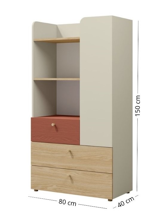 Die moderne und praktische KommodeJUKI 06 ist ein funktionales Möbelstück, das sich perfekt für jedes Kinderzimmer, Jugendzimmer oder jede moderne Einrichtung eignet. Ihre durchdachte Aufteilung besteht aus offenen Regalen und drei geräumigen Schubladen, die reichlich Stauraum für Kleidung, Bücher, Spielzeug und Accessoires bieten.