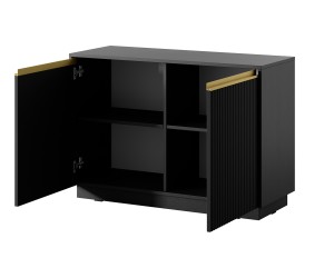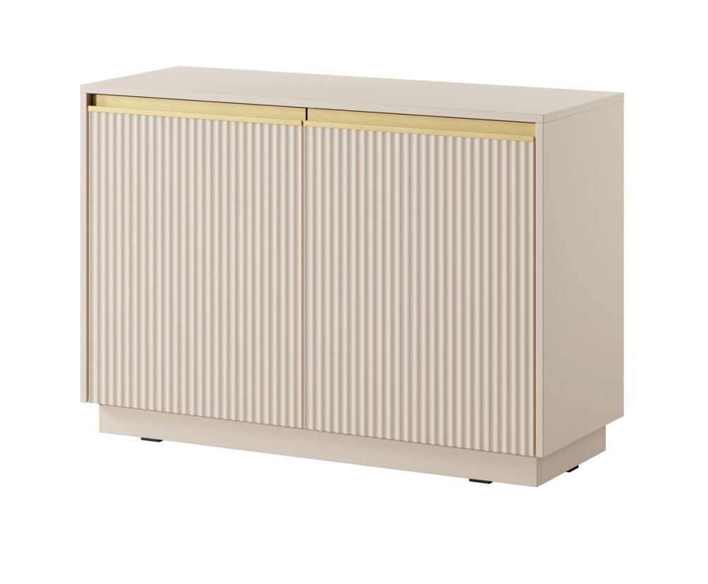 SIMPLE - eine elegante, zweitürige Kommode für das Wohnzimmer. Das Möbel zeichnet sich durch dezent geriffelte Fronten aus, die aus hochwertiger MDF-Möbelplatte gefertigt werden. Funktionale und geräumige Kommode mit Einlegeböden innen. Der Korpus aus Laminatplatte stellt sicher, dass das Möbel solide und robust ist. Die Kommode fügt sich wunderbar in moderne Einrichtungsstile ein.