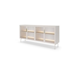 Die 4-türige Kommode SOLARIS 181 cm, mit LED-Beleuchtung im Farbton Kaschmir ist ein modernes Möbelstück für Wohnzimmer, das im Hinblick auf komfortable Aufbewahrung und elegante Präsentation konzipiert wurde. Sie bietet einen großen Stauraum, besticht durch verglaste Fronten sowie eine stimmungsvolle LED-Beleuchtung, die den Inhalt hervorhebt und eine besondere Atmosphäre im Raum schafft. Die funktionale Konstruktion erleichtert die Organisation des Raumes, während sorgfältig ausgewählte Details dem Möbelstück einen modernen und durchdachten Charakter verleihen.