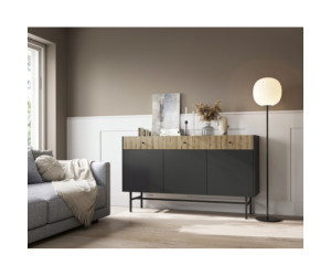 EMI L01 ist eine schwarze dreitürige Kommode mit 3 Schubladen und 3 Schränkchen. Stilvolle und geräumige Kommode für das Schlafzimmer oder Wohnzimmer. Die Lamellen an Fronten der Schubladen verleihen dem Möbel einen modernen Look. Langlebige Laminatplatte bietet Robustheit und Haltbarkeit. Die Metallbeine der Kommode betonen einerseits ihre Modernität, andererseits den Loftcharakter, wodurch sie sich perfekt in die Trends der Innenarchitektur einfügt. Geräumige Einlegeböden bieten viel Stauraum für Kleinigkeiten, Kleidung, Unterwäsche oder andere Accessoires, die immer griffbereit bleiben und erleichtern eine gute Organisation.