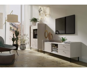Die Kommode GRANDE GR2 ist ein eleganter und funktionaler Vorschlag für moderne Inneneinrichtungen, insbesondere für das Wohnzimmer. Das Modell kennzeichnet das einzigartige Design, das mit schlichter Formgebung und subtilem Luxus kombiniert wird. Hergestellt aus einer hochwertigen, laminierten Platte mit einer Dicke von 16 mm, was die Haltbarkeit und Widerstandsfähigkeit im täglichen Gebrauch gewährleistet. Die Verwendung von ABS-Kanten schützt das Möbelstück vor Beschädigungen und die Struktur im sandbeigen Farbton verleiht ihm eine dezente, natürliche Ästhetik.
