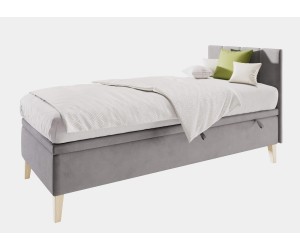 Polsterbett INTARO A8 mit Schlaffläche 90x200 cm für Teenager. Es eignet sich für kleine Jugendzimmer, in denen der vorhandene Raum optimal ausgenutzt werden muss. Dazu verfügt das Polsterbett über einen geräumigen Bettkasten, der viel Stauraum für die Aufbewahrung von Bettdecken, Kissen und anderen Gegenständen bietet. Dieses Jugendbett besitzt ein gepolstertes Kopfteil mit vertikalen Steppungen, die dem Bett einen raffinierten Charakter verleihen. Dekorative Füße aus Buchenholz sind nicht nur stabil und tragfähig, sondern bringen auch ins Interieur einen Hauch von natürlicher Eleganz. Hochwertige Verarbeitung und robuste Ausführung garantieren lange Lebensdauer.