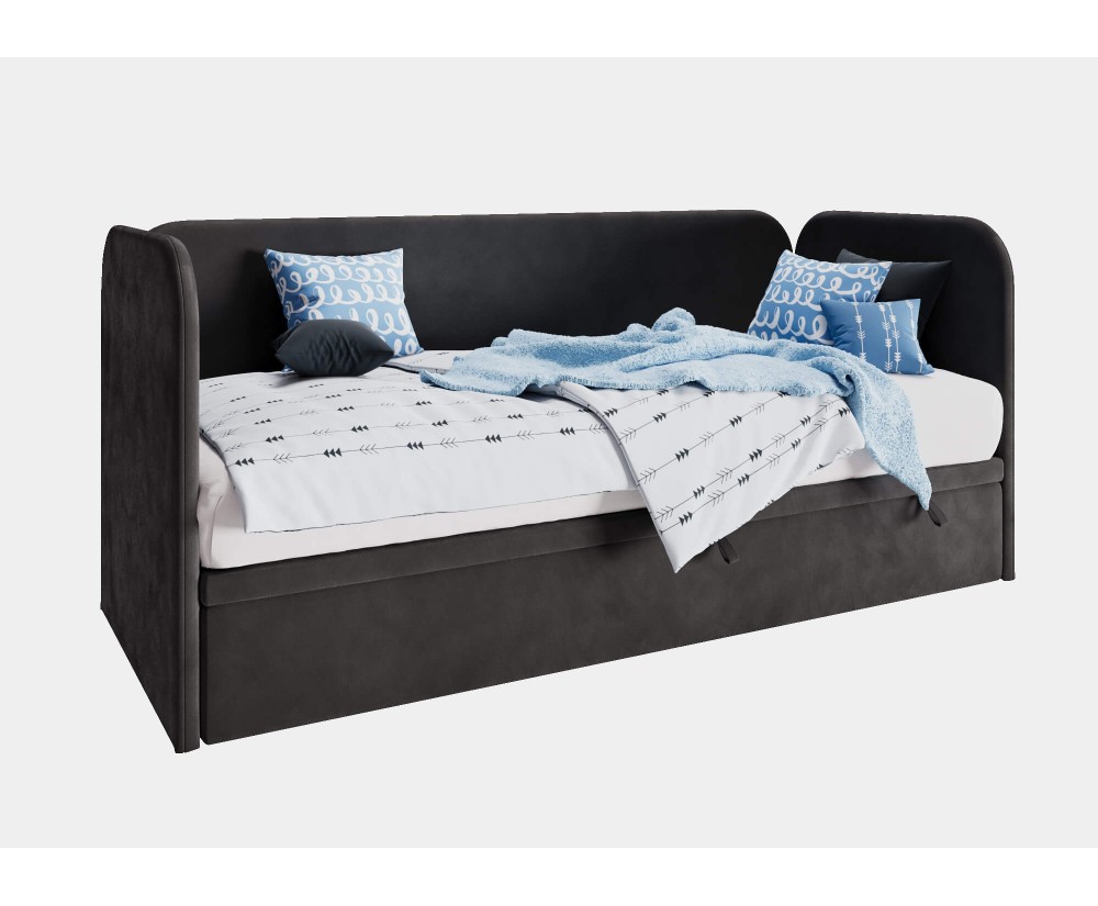 Das Jugendbett OLIVIER verbindet modernes Design mit funktionalen Lösungen, die eine komfortable Erholung garantieren. Hochwertige Materialien und robuste Ausführung kennzeichnen das Modell und gewährleisten eine langlebige Qualität. Das Möbel passt perfekt in kleinere Räume und strahlt dabei Behaglichkeit und stilvolle Eleganz aus.