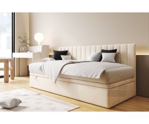 Dieses Einzelbett INTARO A43 ist ein funktionales und modernes Polsterbett, das nicht viel Platz in Anspruch nimmt. Es ist nicht nur praktisch, sondern ergänzt mit seinem Aussehen auch das Interieur. Das Bett passt hervorragend sowohl in ein Kinder- und Jugendzimmer, als auch in Gästezimmer in Hotels und Pensionen. Die gepolsterte Seitenblende bietet eine bequeme Unterstützung für den Rücken beim Lesen von Büchern oder beim Fernsehen. Die Rückseite der Blende im technischen schwarzen Gewebe.