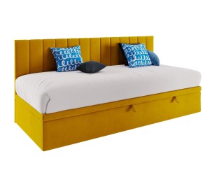 Dieses Einzelbett INTARO A43 ist ein funktionales und modernes Polsterbett, das nicht viel Platz in Anspruch nimmt. Es ist nicht nur praktisch, sondern ergänzt mit seinem Aussehen auch das Interieur. Das Bett passt hervorragend sowohl in ein Kinder- und Jugendzimmer, als auch in Gästezimmer in Hotels und Pensionen. Die gepolsterte Seitenblende bietet eine bequeme Unterstützung für den Rücken beim Lesen von Büchern oder beim Fernsehen. Die Rückseite der Blende im technischen schwarzen Gewebe.