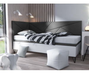 GEOMETRIC 1R ist ein Jugendbett/ Kinderbett im modernen Design. Das Bett hat einen Bettkasten, ein Kopfteil und eine Seitenblende. Charakteristisch für dieses Bett sind dreieckige Nähte an den Bezügen und Metallfüße.