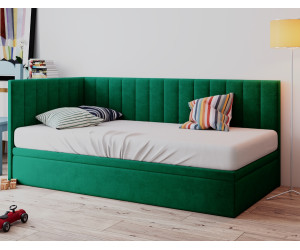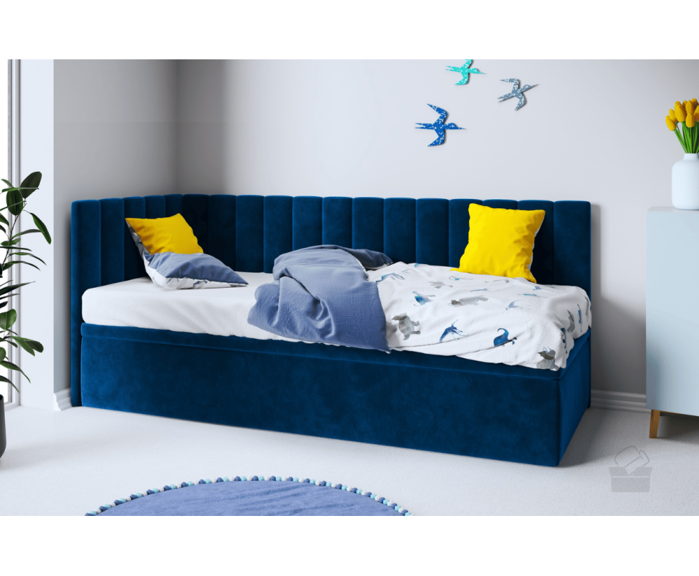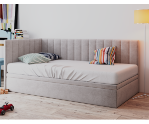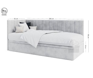 Dieses Einzelbett INTARO A44 ist ein funktionales und modernes Polsterbett, das sich hervorragend sowohl fürs Jugendzimmer als auch für Hotels und Pensionen eignet. Das elegante Design wird durch vertikale Nähte betont. Das gepolsterte Kopfteil und die Seitenblende bieten eine bequeme Unterstützung für den Rücken beim Lesen von Büchern oder Fernsehen. Die Rückseite des Kopfteils und der Blende im technischen schwarzen Gewebe.