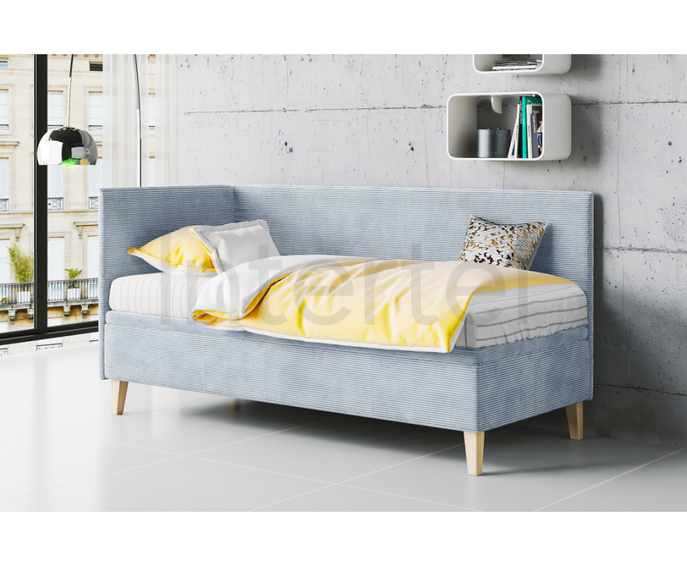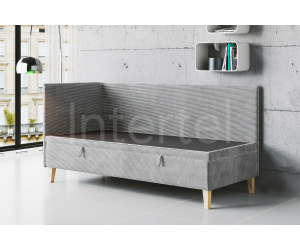 TOMAS ist ein einzigartiges Einzelbett, das durch sein ausgesprochenes Design besticht. Das Bett verfügt über einen praktischen Bettkasten mit Druckfedern, ein Kopfteil und eine Seitenblende. Charakteristisch sind auch hölzerne Füße im skandinavischen Stil, die den Effekt der Leichtigkeit betonen. Solide Konstruktion aus Möbelplatte garantiert eine langlebige Qualität.