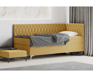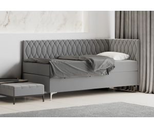 DIANA 2M ist ein einzigartiges Einzelbett im modernen Design. Das Bett hat einen Bettkasten, ein Kopfteil und eine Seitenblende. Charakteristisch für dieses Bett sind schöne Ziersteppung am Kopfteil und an der Seitenblende sowie ansprechend geformte Metallbeine, die die Optik des Möbels zusätzlich aufwerten.