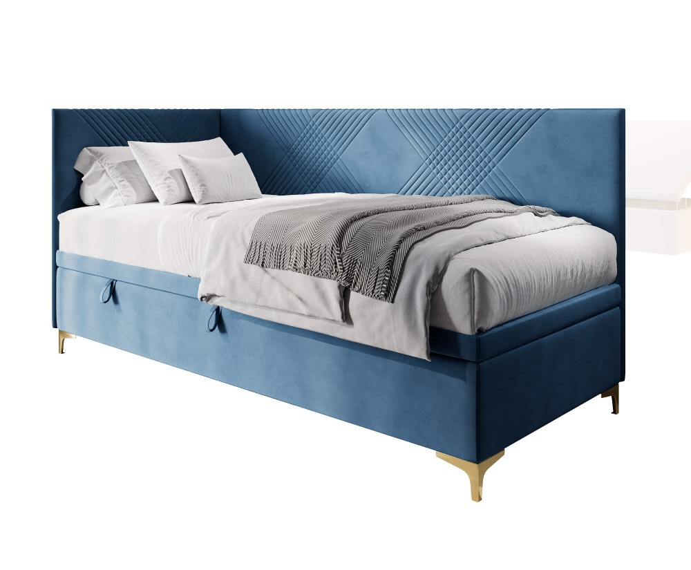 MATRIX 1R ist ein modernes Bett für Jugendliche, das einen einzigartigen Stil mit Funktionalität auf perfekte Weise verbindet. Es wurde speziell im Hinblick auf die Bedürfnisse von Teenagern entworfen, indem es einen bequemen Schlafplatz und ein elegantes Erscheinungsbild bietet. Mit solchen Details wie goldfarbene Metallfüße und ein geräumiger Bettkasten ist das Bett MATRIX 1R die perfekte Wahl für alle, die Wert sowohl auf Praktikabilität, als auch auf eine interessante Optik legen.