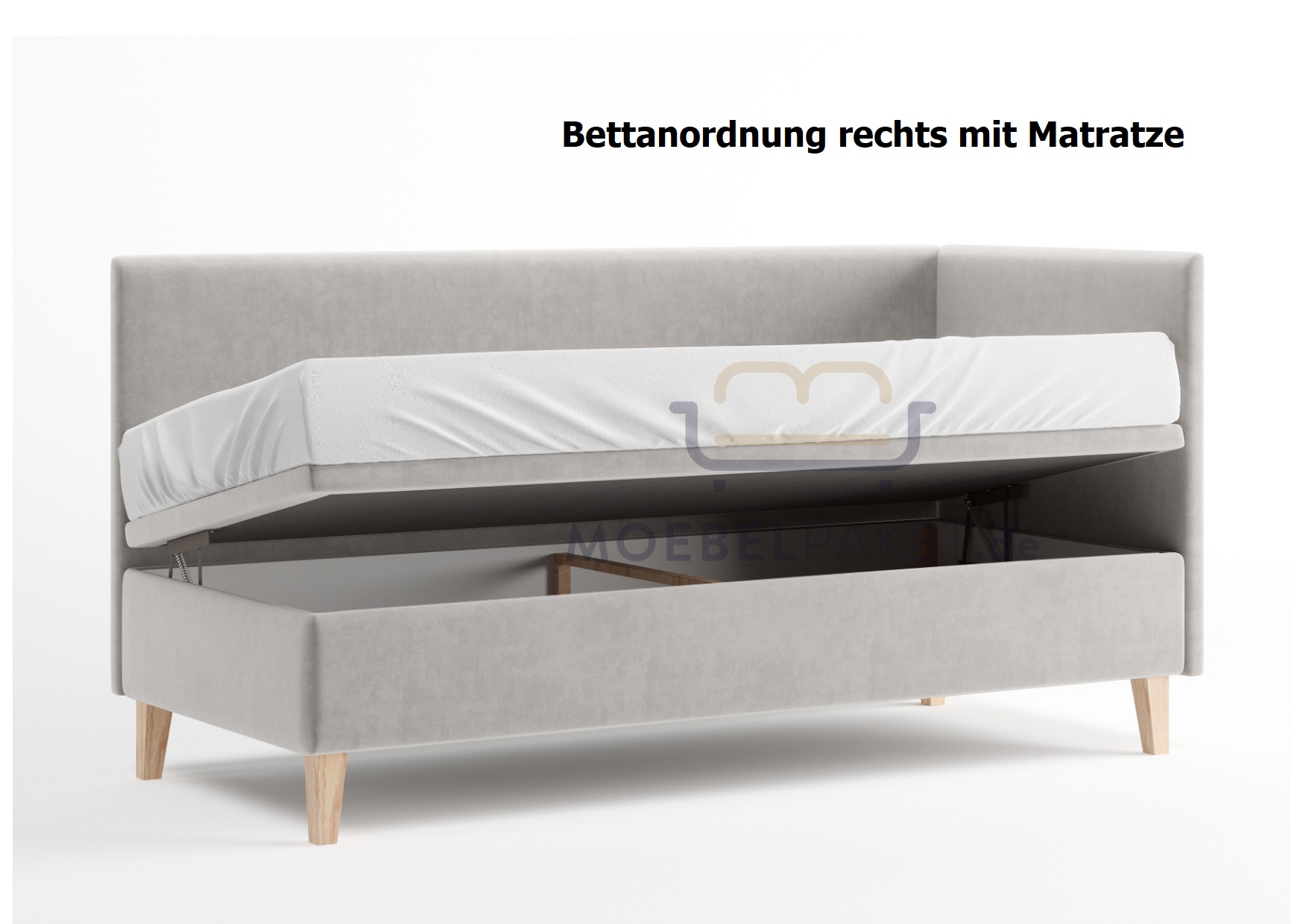 Bitte wählen Sie aus der Liste die Anordnung des Bettes: rechts oder links.