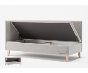 Das Bett PLAY 1R ist ein einzigartiges Einzelbett mit außergewöhnlichem Design. Dieses Modell zeichnet sich durch ein originales geometrisches Muster am Kopfteil und an der Seitenblende aus. Das Bett hat einen praktischen Bettkasten mit Druckfedern, die den Zugriff auf den Raum unter dem Bett erleichtern. Charakteristisch sind hier die 10 cm hohen schwarzen Füße, die einen sicheren Stand garantieren. Matratze ist nicht inklusive. Eine passende Matratze können Sie in unserem Shop separat bestellen. Das Gestell und die Seitenteile sind mit Stoff in Bettfarbe bezogen. Zur besseren Belüftung sind im Gestell Lüftungsöffnungen vorhanden.
