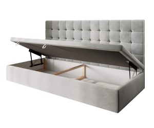 Dieses elegante Polsterbett MELANIA 1R ist eine ausgezeichnete Wahl für ein Kinder-, Jugendzimmer oder für ein Schlafzimmer. Das Bett vereint Funktionalität mit Ästhetik auf perfekte Weise. Sein einzigartiges Design zeichnet sich durch die subtile, dekorative Steppung an der Seitenblende aus, was dem Möbelstück einen eleganten und außergewöhnlichen Charakter verleiht. Der praktische Bettkasten bietet einen zusätzlichen Stauraum für die Aufbewahrung von verschiedenen Gegenständen und ist somit eine ideale Lösung für kleinere Innenräume, wo jeder Zentimeter zählt.