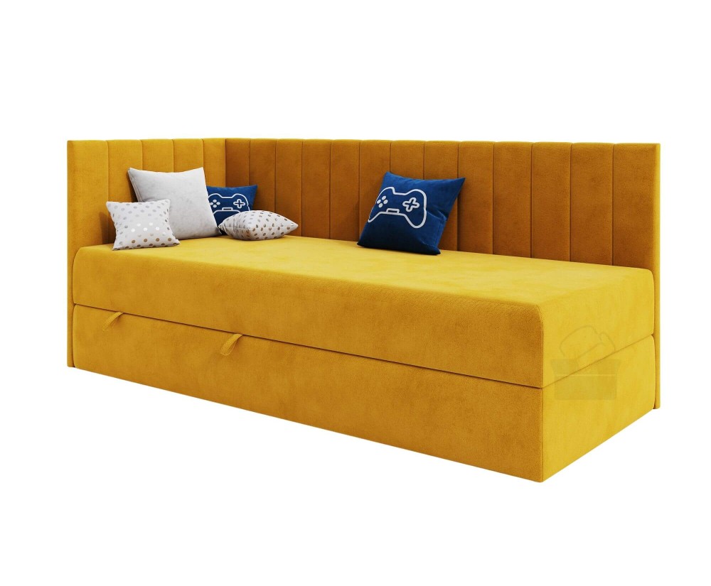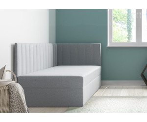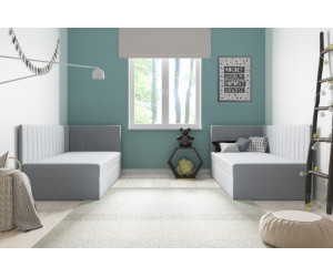 Dieses Einzelbett INTARO A27 ist ein funktionales und modernes Polsterbett, das sich hervorragend sowohl fürs Jugendzimmer als auch für Hotels und Pensionen eignet. Das elegante Design wird durch vertikale Nähte betont. Das gepolsterte Kopfteil und die Seitenblende bieten eine bequeme Unterstützung für den Rücken beim Lesen von Büchern oder beim Fernsehen. Die Rückseite des Kopfteils und der Blende im technischen schwarzen Gewebe.
