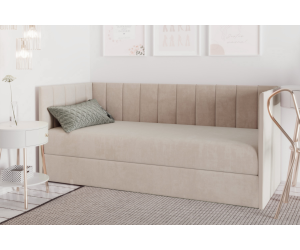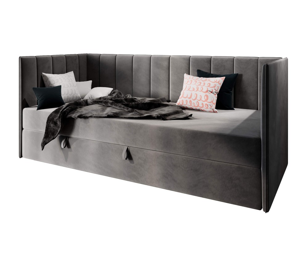 Das Polsterbett MILENA bietet einen komfortablen Schlafplatz und verspricht viel Behaglichkeit bei Erholung. Die elegante und solide Konstruktion, Funktionalität und hoher Komfort machen das Bett zu einer idealen Auswahl für jüngere Personen. Vertikale Nähte an Kopfteilen und an der Seitenblende verleihen dem Möbel eine ästhetische Präsenz und betonen seine hochwertige Ausführung. Die zwei Kopfteile und eine Seitenblende bieten eine bequeme Rückenlehne beim Lesen der Bücher oder beim Fernsehen.