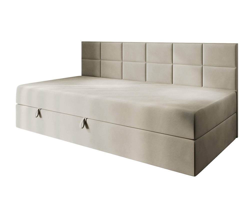 Das Bett MEROO 2M ist ein modernes und komfortables Bett, das sich hervorragend sowohl für Jugendzimmer als auch für Hotels oder Pensionen eignet. Das elegante Design wird durch die gepolsterte Seitenblende in Form von Rechtecken unterstrichen. Das Bett ist nicht nur bequem, sondern auch ein perfekter Abschluss für die Gestaltung jedes Interieurs. Das Möbel steht auf Gleitfüßen. Der praktische Bettkasten mit Druckfedern wurde aus der hochwertigen Möbelplatte gefertigt.