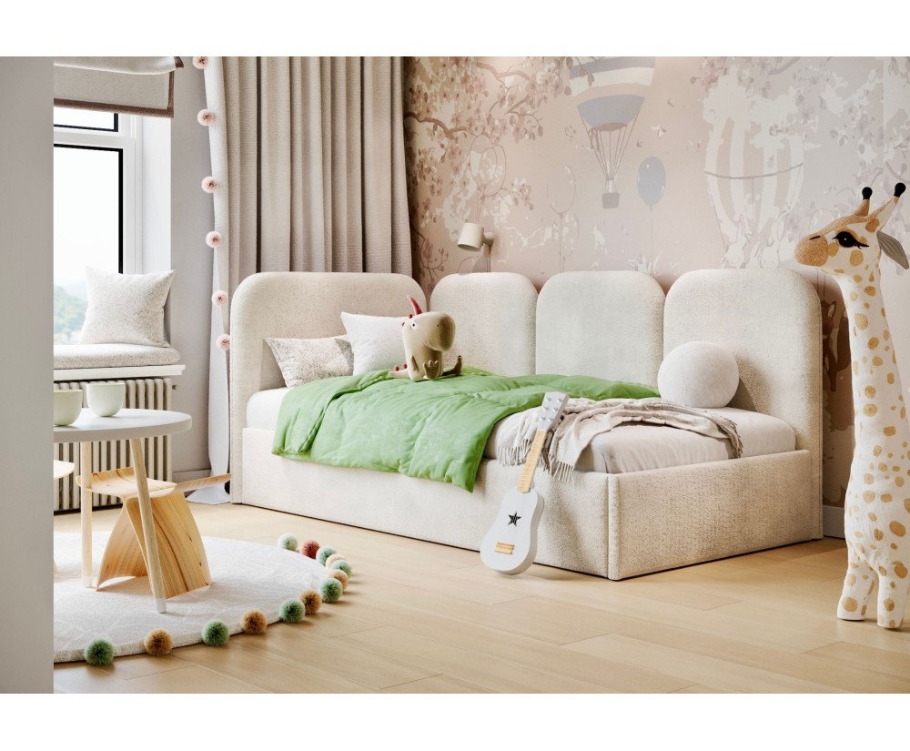 Bett freistehend – rundum gepolstert, deswegen kann es beliebig im Raum aufgestellt werden;