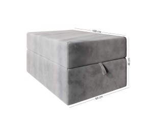 Das stilvolle und funktionale Eckbett (100x200 cm) ist die perfekte Lösung für moderne und kompakte Innenräume. Das Set beinhaltet auch einen praktischen Sitzhocker mit der Größe von 100x60 cm, der als zusätzliche Sitzgelegenheit, Fußstütze oder sogar als Beistelltisch dienen kann – ideal für den Alltag oder für Gäste.