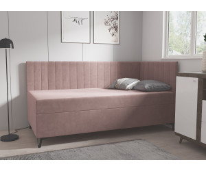 AMELIA 2M ist ein einzigartiges Jugendbett im modernen Design. Das Bett hat einen Bettkasten, ein Kopfteil und eine Seitenblende. Charakteristisch für dieses Bett sind vertikale Nähte an den Bezügen und Metallbeine.