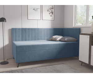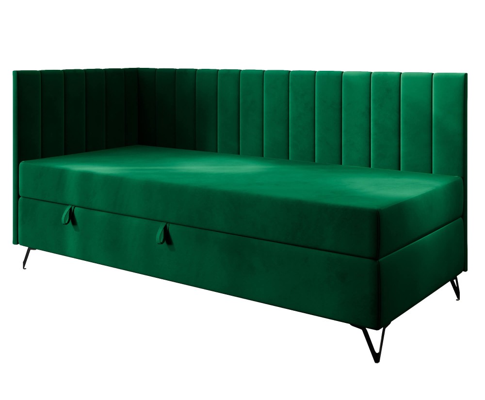 AMELIA 2M ist ein einzigartiges Jugendbett im modernen Design. Das Bett hat einen Bettkasten, ein Kopfteil und eine Seitenblende. Charakteristisch für dieses Bett sind vertikale Nähte an den Bezügen und Metallbeine.