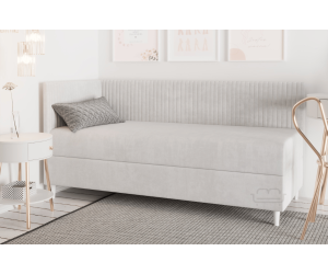 CARMEN 2M ist ein einzigartiges Jugendbett im modernen Design. Das Bett besticht durch sein Kopfteil und seine Seitenblende mit schmalen vertikalen Nähten. Charakteristisch für dieses Bett sind auch stabile und tragfähige Holzfüße in Buchenfarbe.