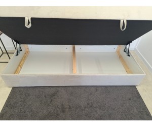 Unter der Matratze befindet sich ein geräumiger Stauraum – ideal für Bettdecken, Kissen, Decken oder saisonale Kleidung. Der einfache Zugriff macht das Organisieren und Aufräumen im Zimmer so einfach wie nie zuvor.