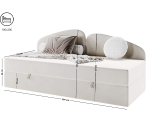 Das Bett ist in verschiedenen Farben erhältlich und mit abriebfesten, alltagstauglichen Stoffen bezogen. Das Material ist OEKO-TEX® zertifiziert und somit gesundheitlich unbedenklich und schadstofffrei – perfekt fürs Kinderzimmer.