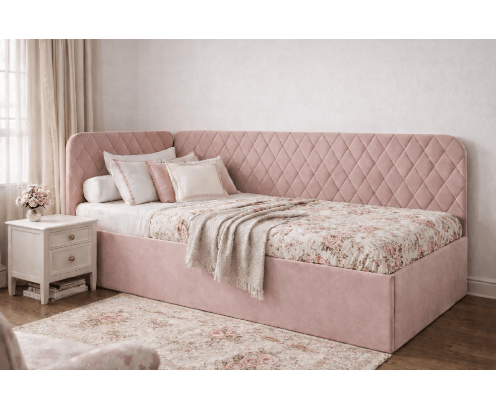 KINGA SM 02 ist ein komfortables Polsterbett, das für erholsamen Schlaf und die optimale Nutzung des verfügbaren Raums entwickelt wurde. Das Modell ist mit einem großen Bettkasten ausgestattet, der einen praktischen Stauraum für Bettwäsche, saisonale Kleidung oder Spielzeuge bietet. Der Lattenrost mit einem Metallrahmen und Gasdruckfedern ermöglicht ein einfaches und sicheres Anheben der Matratze.