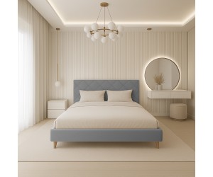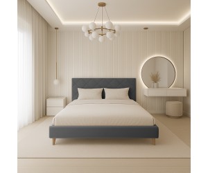 LARETTO T25 ist ein modernes und elegantes Polsterbett mit Schlaffläche 180x200 cm. Das hohe klassische Kopfteil mit Karo-Muster verleiht dem Möbel einen besonderen Charakter. Mit hölzernen Füßen gewinnt das Bett an Leichtigkeit. Schöne hochwertige Stoffbezüge in modernen Farbvarianten passen perfekt in jeden Einrichtungsstil. Das Bett ist mit einem nicht klappbaren Lattenrost ausgestattet, ohne Bettkasten. Dieses Modell eignet sich ideal sowohl für Schlafzimmer, als auch für Gästezimmer in Hotels. Matratze ist nicht inklusive. Eine passende Matratze können Sie in unserem Shop finden.